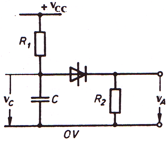 يوصل كمون التغذية Vcc)) في الدارة المبينة في الشكل إلى مصعد الثنائي رباعي الطبقات عن طريق دارة تكامل مكونة من المقاومة (R1) والمكثف (c) .